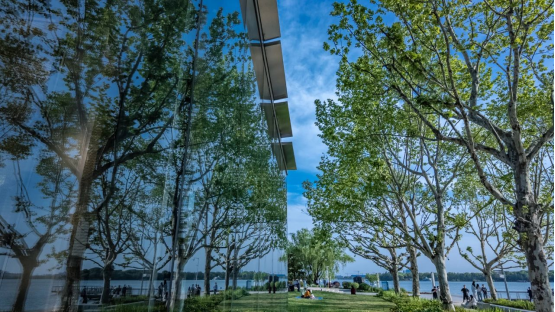 初夏時(shí)節(jié),園區(qū)的開放式景區(qū)、口袋公園處處綠樹成蔭,濱水駁岸區(qū)域水清岸綠、鳥類恣意棲息,引得市民游客頻頻駐足。一幅幅人與自然和諧共生的生態(tài)畫卷在園區(qū)鋪展。
