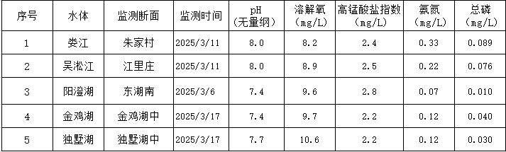 2025年3月蘇州工業園區地表水監測結果