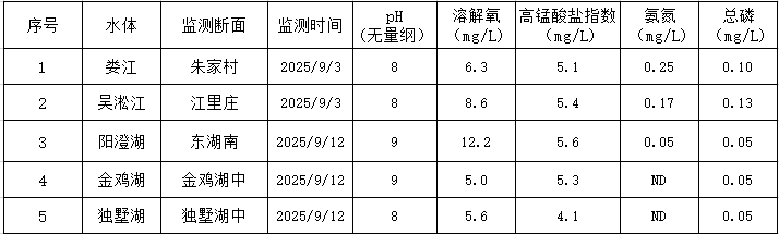 2025年9月蘇州工業園區地表水監測結果