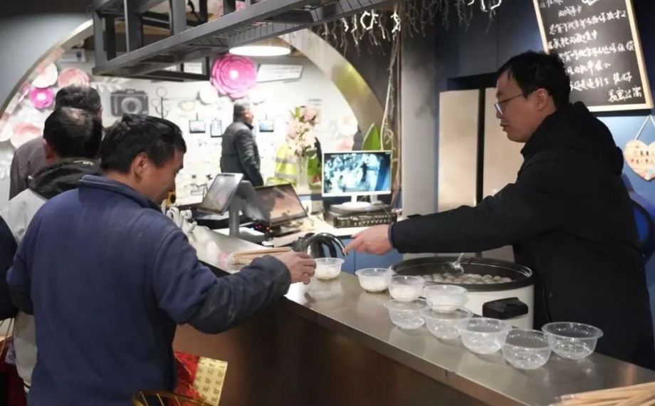 除了法律知識的普及、政策服務(wù)的宣傳,活動現(xiàn)場還充滿了濃濃的節(jié)日氛圍。商務(wù)區(qū)黨工委為參與活動的集宿區(qū)員工與建筑工人送上熱氣騰騰的湯圓,并將法治元素、黨建元素融入元宵祝福中。湯圓雖小,卻承載著滿滿的溫暖與關(guān)懷,讓這個元宵節(jié)變得格外暖心。此外,商務(wù)區(qū)兩新工委準備了傳統(tǒng)冰糖葫蘆,“一串紅果送甜蜜,情暖工友慶元宵”,讓工人朋友在節(jié)日里感受到甜蜜與溫暖。