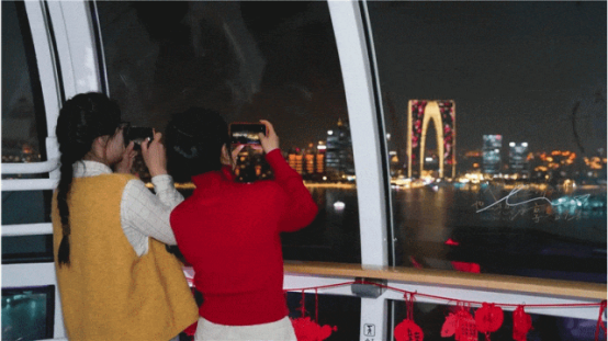 金雞湖音樂(lè)噴泉多日連映,沉浸式光影秀奏響新年序曲,帶給市民游客極致的視覺(jué)與聽(tīng)覺(jué)享受;“蘇州之眼”摩天輪推出魚(yú)燈巡游、國(guó)潮電音派對(duì)、機(jī)器狗拜年等趣味互動(dòng),將科技元素注入傳統(tǒng)年味,傳統(tǒng)民樂(lè)與現(xiàn)代電音碰撞融合,打造潮流年味盛宴;金雞湖右岸“飛翔”雕塑下,郁金香層層疊疊盛放,紅的熱烈、粉的爛漫,隨手拍都是春日畫(huà)報(bào)。眾多市民游客積極參與金雞湖春節(jié)「潮」好拍小紅書(shū)環(huán)湖打卡活動(dòng),用鏡頭記錄金雞湖沿線地標(biāo)的新春顏值。
