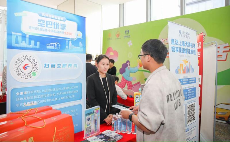 “從城市航站樓出發(fā),多久可以到達上海浦東機場?”“最早的班車幾點出發(fā)?”在蘇州城市航站樓的展位前,工作人員耐心解答員工關于出行服務的疑問,從航班信息查詢到行李托運服務,為員工提供了全方位的出行指導。