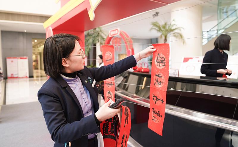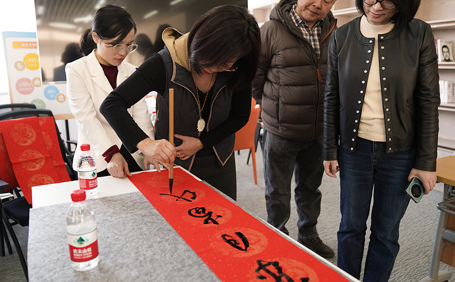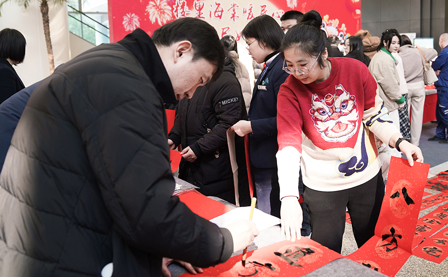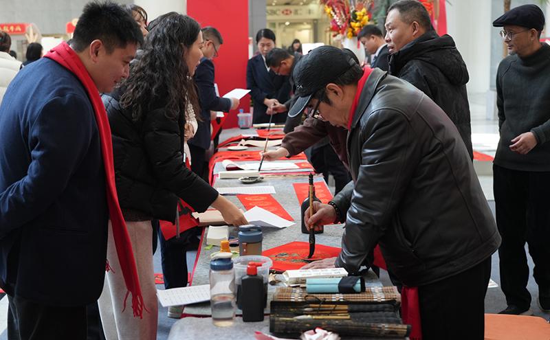 活動(dòng)現(xiàn)場一片歡樂祥和的節(jié)日氛圍,前來領(lǐng)取春聯(lián)及福字的員工絡(luò)繹不絕,大家手捧著新鮮出爐的春聯(lián),臉上洋溢著幸福的笑容,對書法家們的精湛技藝贊不絕口。一位在國際大廈工作的員工表示:“在超市選購春聯(lián)雖然方便,但現(xiàn)場手寫的春聯(lián)更有溫度、更有年味。我拿到了一副很合我心意的手寫春聯(lián),一定要把這份福氣帶回家。”短短兩個(gè)小時(shí)內(nèi),現(xiàn)場就送出了約500副春聯(lián)和500個(gè)福字,將滿滿的福氣傳遞到每個(gè)人手中。