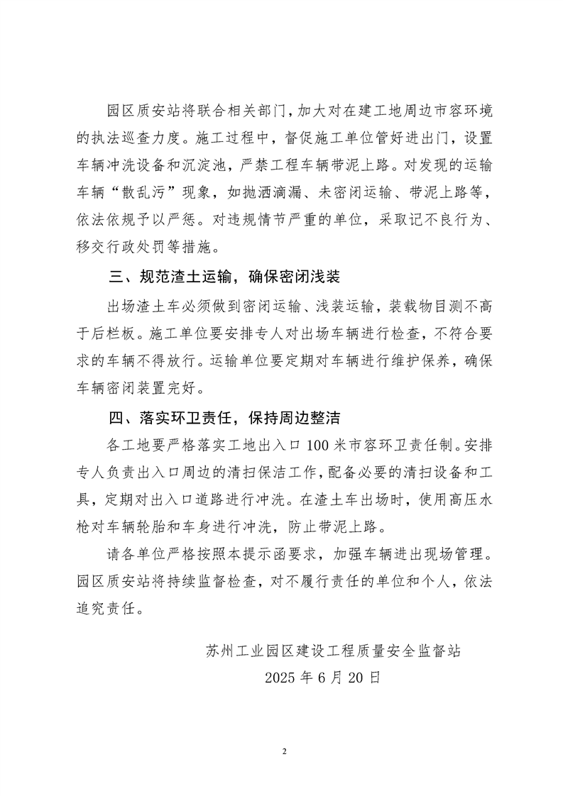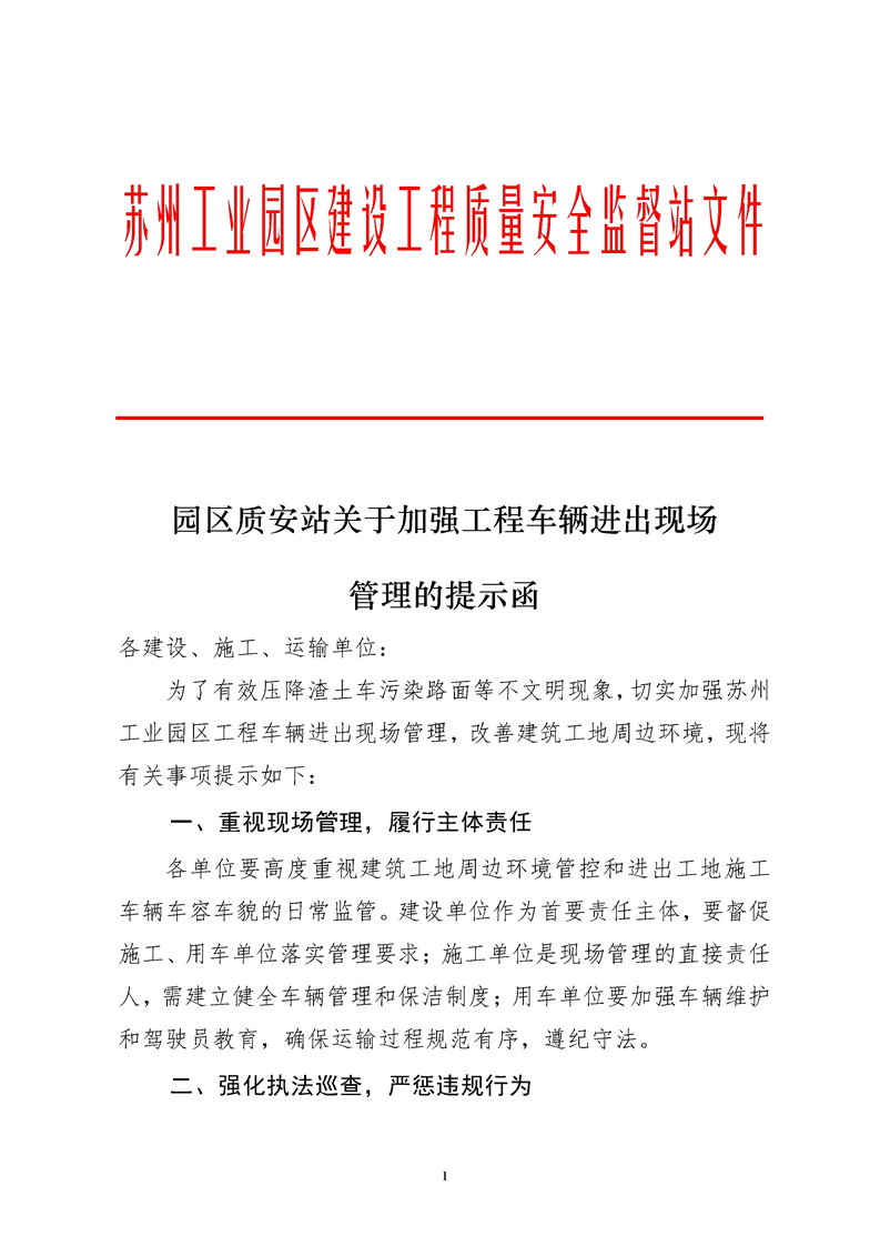 園區(qū)質(zhì)安站關(guān)于加強工程車輛進出現(xiàn)場管理的提示函