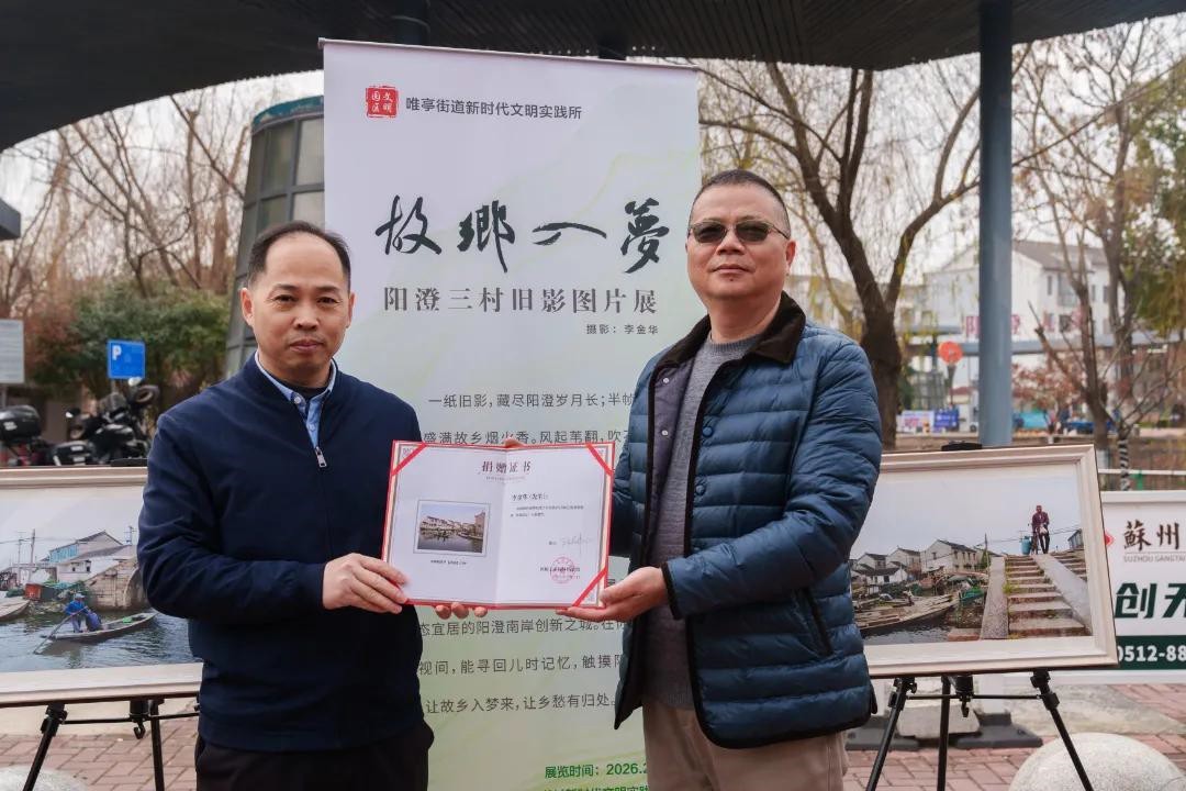 時光不語,影像留痕。2月4日,以《故鄉入夢》為主題的李金華攝影作品展(老照片展),在蘇州工業園區唯亭街道陽澄湖村社區溫情啟幕。本次展覽集中展出基層文化工作者、姑蘇區人大代表、中國攝影家協會會員李金華先生多年來聚焦唯亭的珍貴影像,同時李金華將作品正式捐贈給蘇州工業園區檔案館,讓這份散落的鄉土記憶,正式納入園區城市記憶檔案庫,以永久收藏的形式,續寫水鄉文脈的傳承新篇。