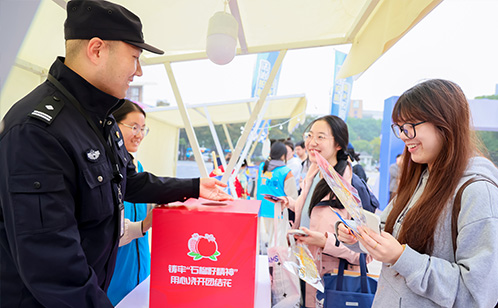 現場設置禁毒科普、法治問答、漆扇制作、糖畫制作等攤位,同時設有反詐擦亮眼、平安圈圈樂、飛盤大冒險、不倒翁智算塔等小游戲,讓學生們體驗式打卡、浸潤式學法,激發其學法興趣和積極性,讓法治宣傳更聚人氣、更有實效。
