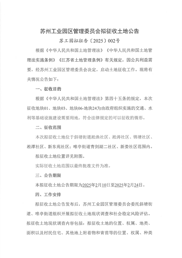 蘇工園擬征告〔2025〕002號--擬征收土地公告