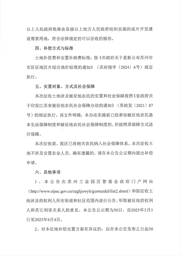 蘇州工業(yè)園區(qū)2025年度第5批次城市建設(shè)用地--蘇州工業(yè)園區(qū)管理委員會征地補(bǔ)償安置方案公告(蘇工園征補(bǔ)安置〔2025〕001號)