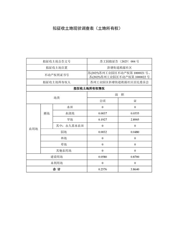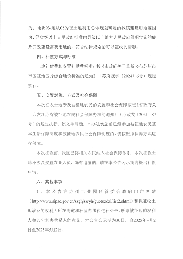 蘇州工業園區2025年度第3批次城市建設用地--蘇州工業園區管理委員會征地補償安置方案公告(蘇工園征補安置〔2025〕002號)