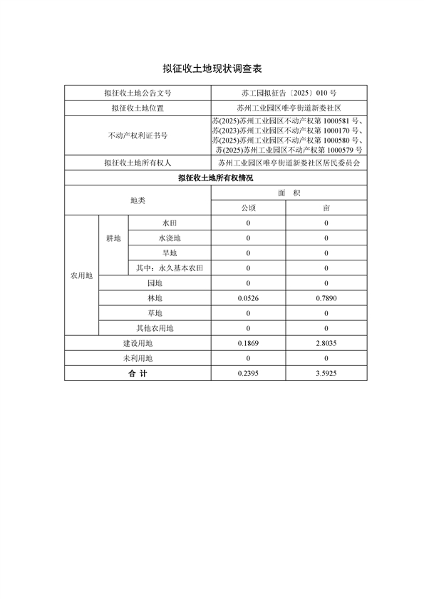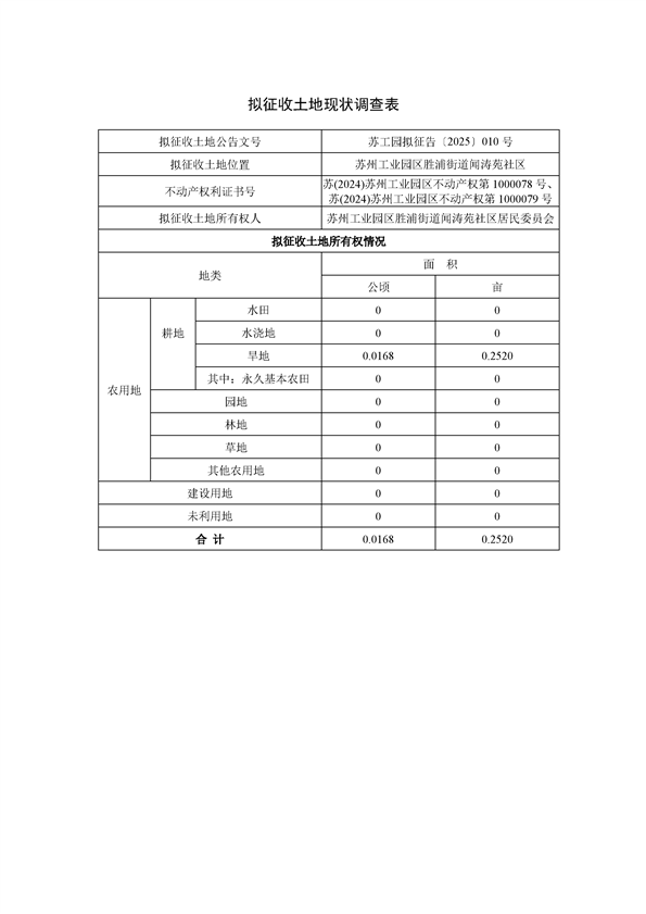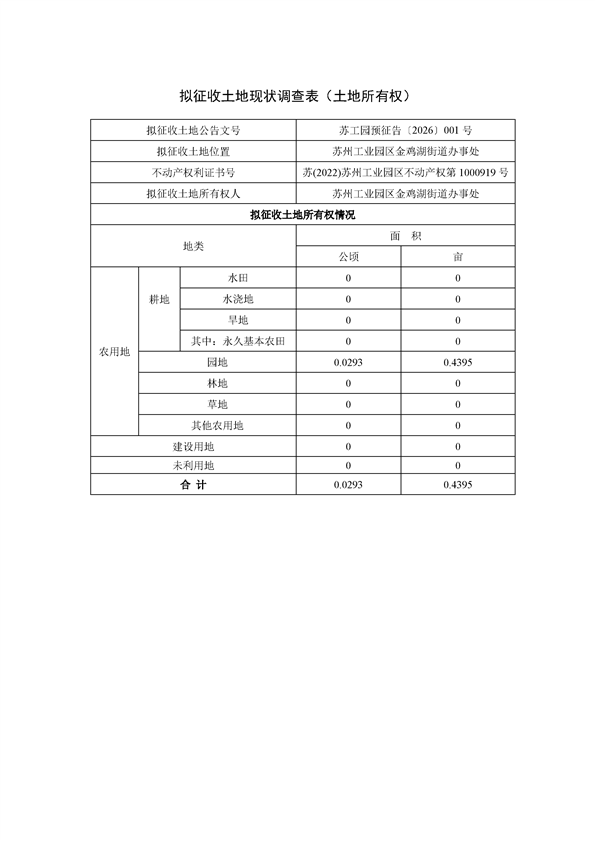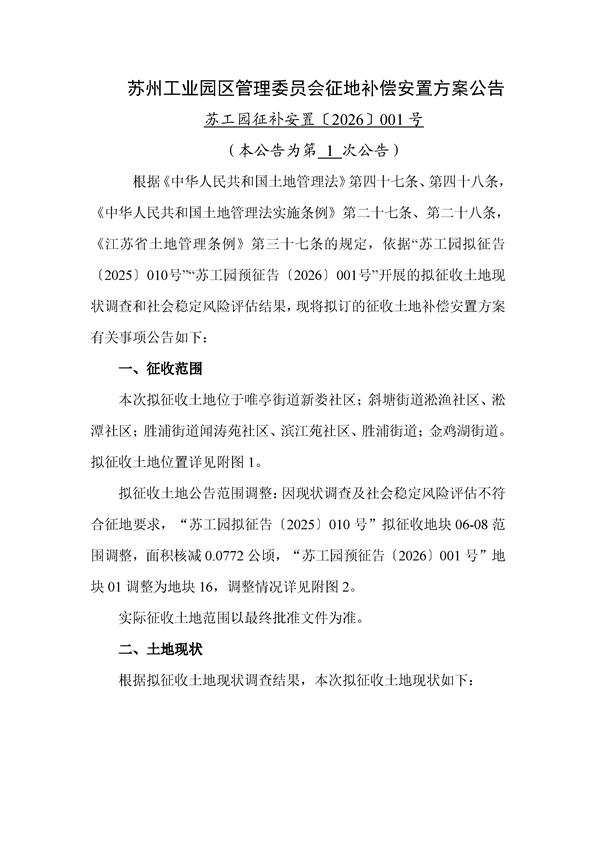 蘇州工業(yè)園區(qū)管理委員會征地補償安置方案公告(蘇工園征補安置〔2026〕001號)