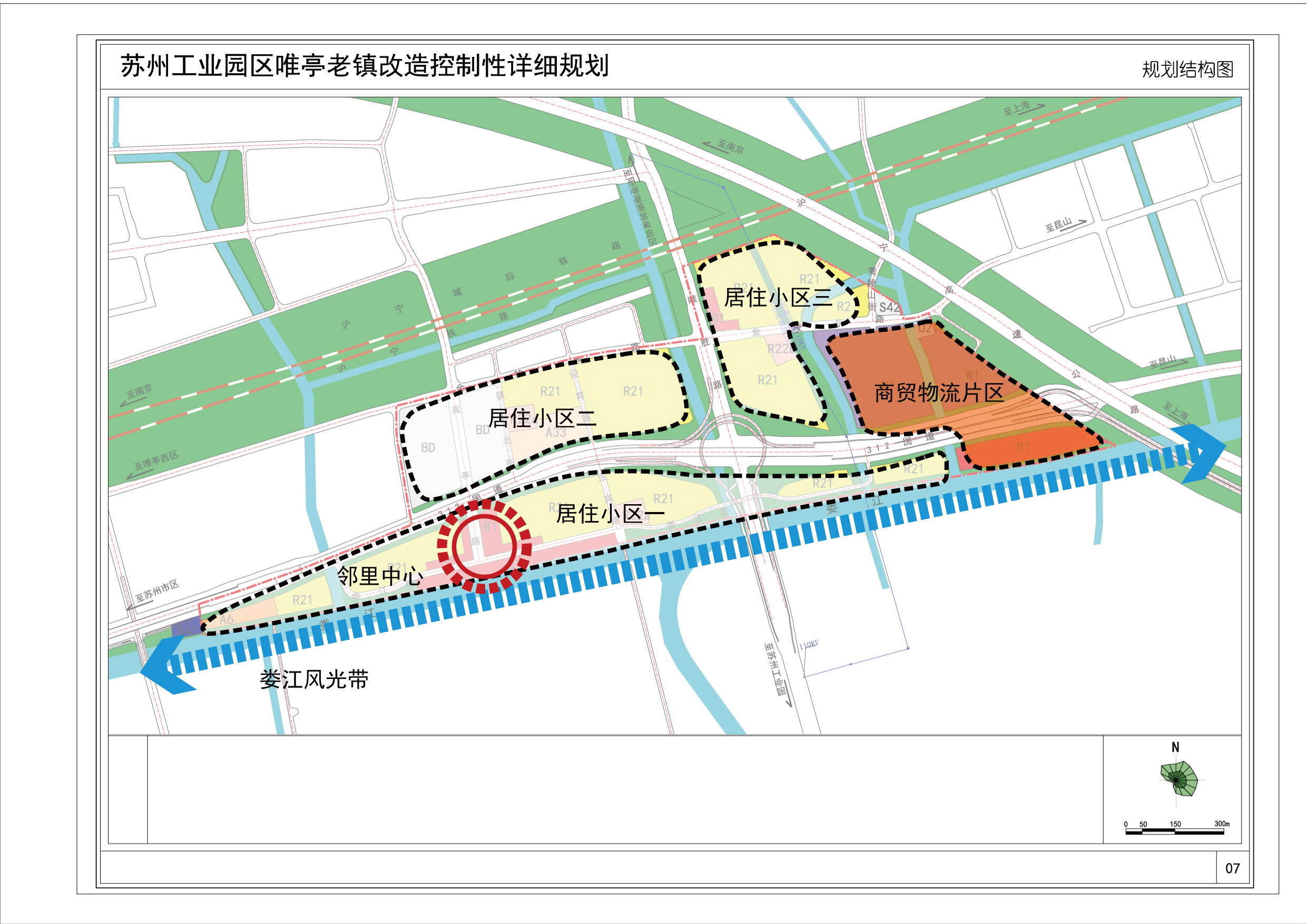 規(guī)劃范圍東至滬寧高速公路,西至園區(qū)二中,南至婁江,北至滬寧城際鐵路,總用地面積約127.6公頃。