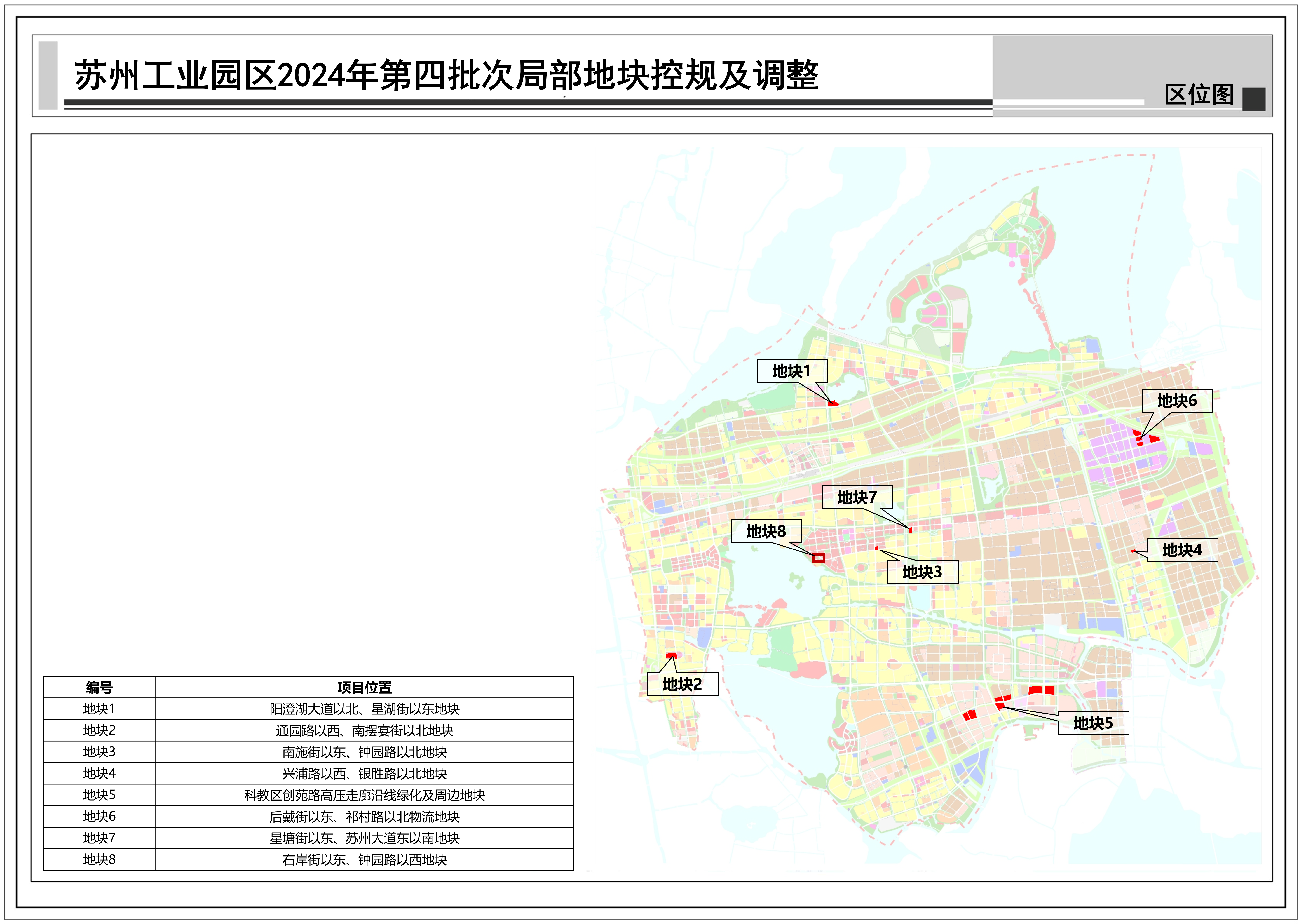 蘇州工業(yè)園區(qū)2024年第四批次局部地塊控規(guī)調(diào)整:共包括8個地塊,總用地面積約0.74平方公里,詳見附圖區(qū)位圖。