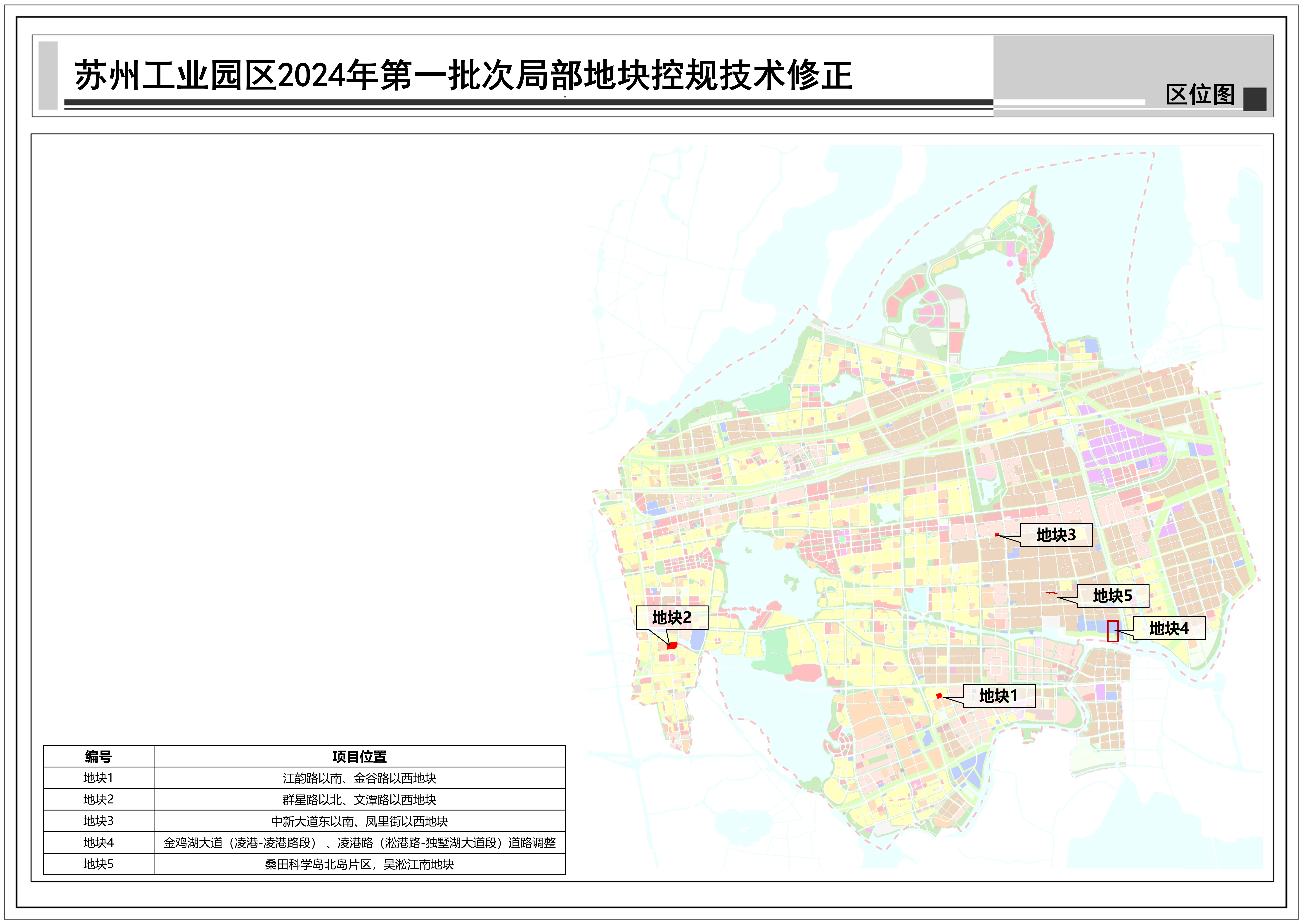 蘇州工業(yè)園區(qū)2024年第一批次局部地塊控規(guī)技術(shù)修正:共包括5個地塊,總用地面積約0.13平方公里,詳見附圖區(qū)位圖。