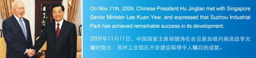 2009年11月11日、中國?胡錦濤國家主席がシンガポール?リークァンユ上級相と會見した際に、蘇州工業(yè)園區(qū)の開発?建設(shè)は注目すべきの成績を収めたと述べた。