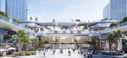 蘇州東駅は園區の桑田科學島の核心エリア、生物産業園の西側に位置する。同プロジェクトの初期開発用地は約45ヘクタール、建築面積が合計147萬平方メートルで、駅、商業施設、ホテル、研究開発オフィス、住宅、都市総合サービスなどを一體とする。建設完成後、一日の利用者は約18萬人を見込んでいる。駅の主體は地上1階、地下3階(部分的に4階)で、合計4つのホームが建設される。