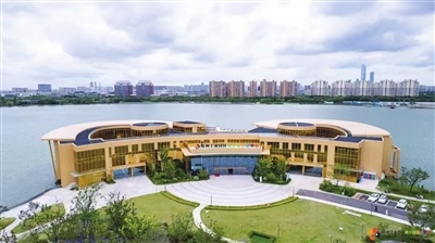 紹介によると、同センターは青剣湖景勝地の北西岸近くに位置し、3階建ての施設で、敷地面積は約15,200平方メートル、延べ床面積は12,600平方メートル以上がある。美術展示館、図書閲覧室、多機能ホール、青剣湖水上音楽ホールなどが先行オープンしており、今後は科學體験館、江南文化館、労働生態園、託児?早期教育センターなどのテーマ施設も順次開設予定である。