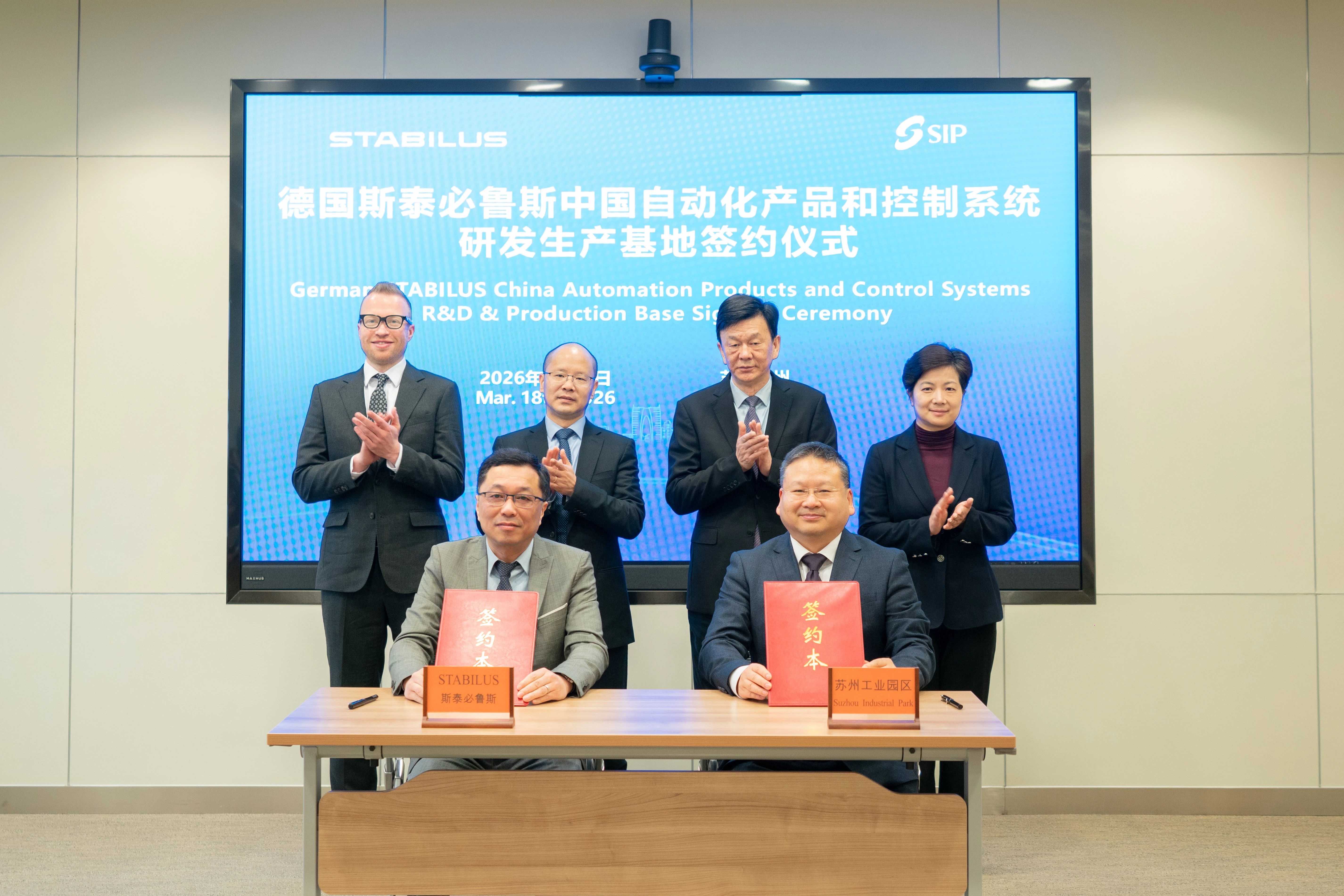3月18日、ドイツのSTABILUS自動化製品と制御システム研究開発生産基地が契約締結により蘇州工業園區に定著した。
