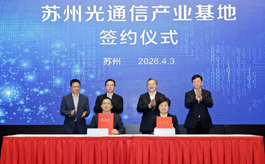 4月3日、蘇州光通信産業(yè)基地調(diào)印式が行われた。蘇州市委員會書記の範波氏、蘇州旭創(chuàng)科學(xué)技術(shù)有限公司創(chuàng)始者兼最高経営責(zé)任者の劉聖氏が調(diào)印式に出席し、共に蘇州光通信産業(yè)基地及び産學(xué)研協(xié)力プラットフォームの除幕を行った。