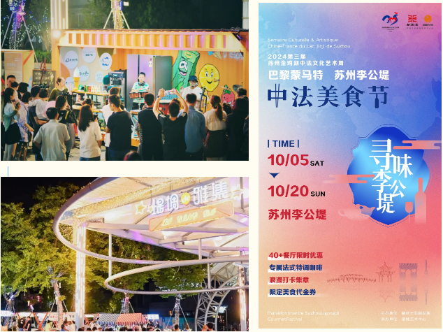 中法文化周期間,李公堤文創(chuàng)街區(qū)繼續(xù)開設(shè)“中法風(fēng)情美學(xué)市集”,匯集美食、藝術(shù)、潮流元素,展示中法文創(chuàng)內(nèi)容。同時(shí),李公堤聯(lián)袂黑珍珠餐廳、精選特色餐廳等近40家商戶開展了“中法美食節(jié)”,呈現(xiàn)不同主題的中西式美食盛宴,營(yíng)造不同風(fēng)格的美食文化氛圍。