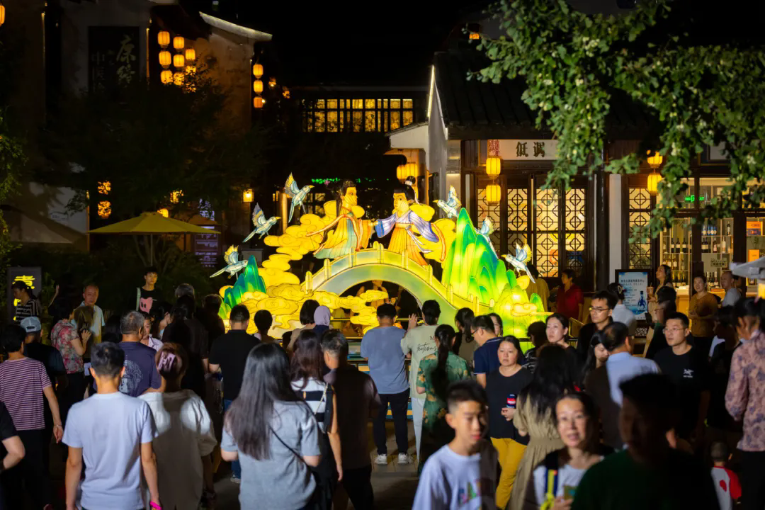 今年斜塘老街再次攜手蘇州燈彩國(guó)家級(jí)非遺傳承人汪筱文老師,以“風(fēng)雅頌江南”為主題,通過(guò)燈彩組景的形式,帶來(lái)具有濃厚中式美學(xué)意境的節(jié)日?qǐng)鼍胺諊w驗(yàn)。