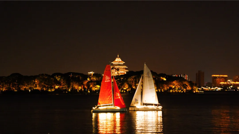 帆船夜航巡演結(jié)合帆船風(fēng)格和視覺(jué)享受,在右岸水域精心規(guī)劃夜航巡演線路,在夜幕降臨時(shí),燈光裝點(diǎn)的船只成為水面上的一道亮麗風(fēng)景,和周圍環(huán)境的美景相互映襯。