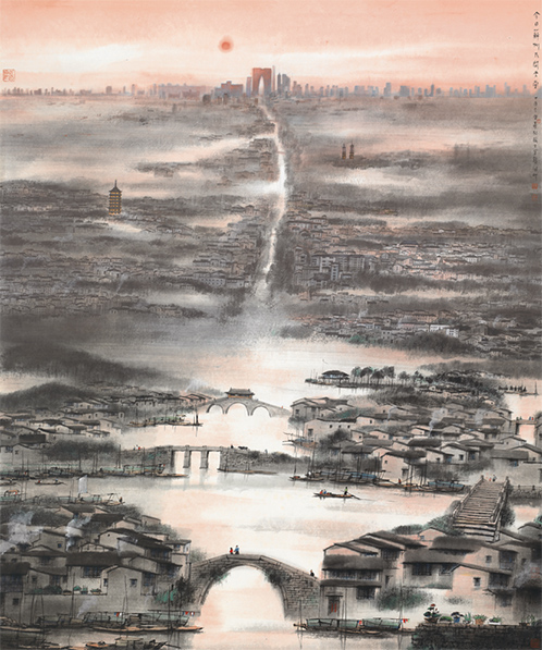 楊明義是蘇州籍畫家,他在80歲高齡創(chuàng)作的水墨作品《今日蘇州人間天堂》在此次展覽中亮相。該作品由近及遠,描繪出蘇州古今不同的時代風貌——既有小橋流水、古塔園林,也有蘇州工業(yè)園區(qū)的繁華盛景,體現(xiàn)了江南水鄉(xiāng)的發(fā)展變遷。“我去過新加坡,也因為藝術的淵源,對新加坡有著深厚的感情。藝術需要交流,通過一次次互動,相信未來中新文化合作必將結出更加豐碩的成果。”楊明義說。