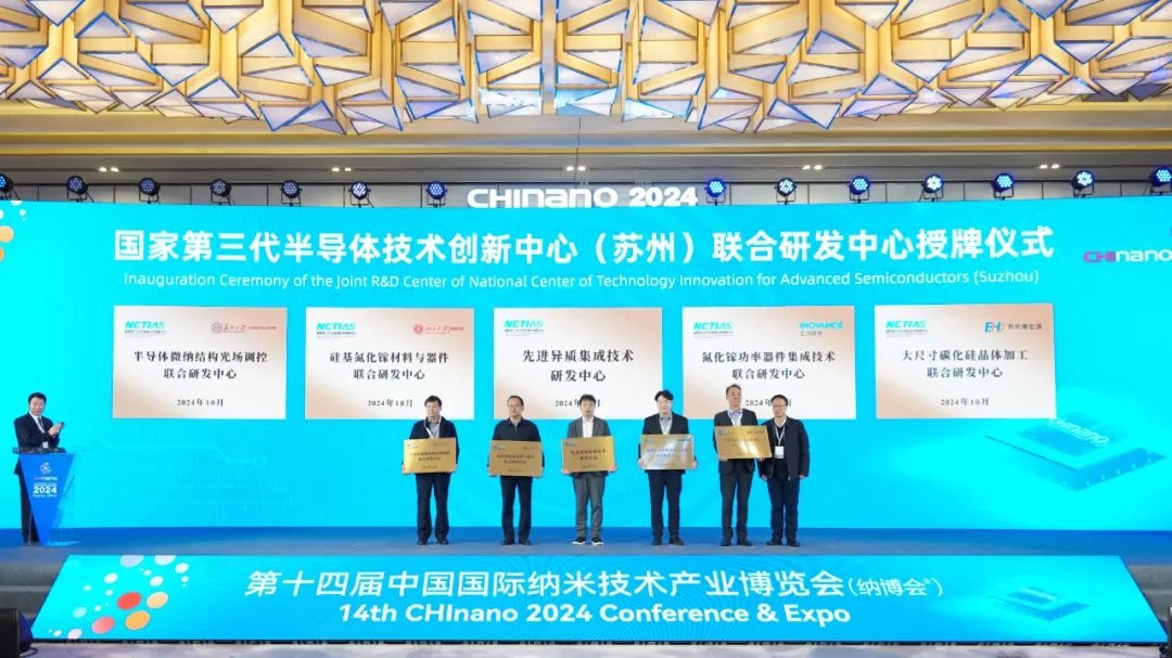 10月23日,第十四屆中國國際納米技術產業(yè)博覽會在蘇州工業(yè)園區(qū)開幕。在開幕式上,國家第三代半導體技術創(chuàng)新中心(蘇州)十大科技問題及研發(fā)成果發(fā)布,并為國家第三代半導體技術創(chuàng)新中心(蘇州)聯合研發(fā)中心授牌。