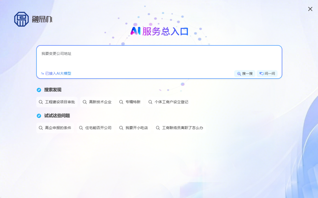為提升企業使用體驗感,“園區法人服務總入口”積極擁抱AI+浪潮,深度鏈接DeepSeek大模型,全國首創“AI服務總入口”,集結各部門精心打造的AI“人才助手”“高企助手”“企業開辦助手”等智能體矩陣,每個領域都有高級AI專家出謀劃策;打通了智能客服與AI搜索能力,打造了“搜”“問”“辦”全鏈深度融合的智能服務新模式,無需記住專業術語,企業只需像朋友對話一樣描述需求,平臺就能迅速解析場景,精準推薦服務方案。