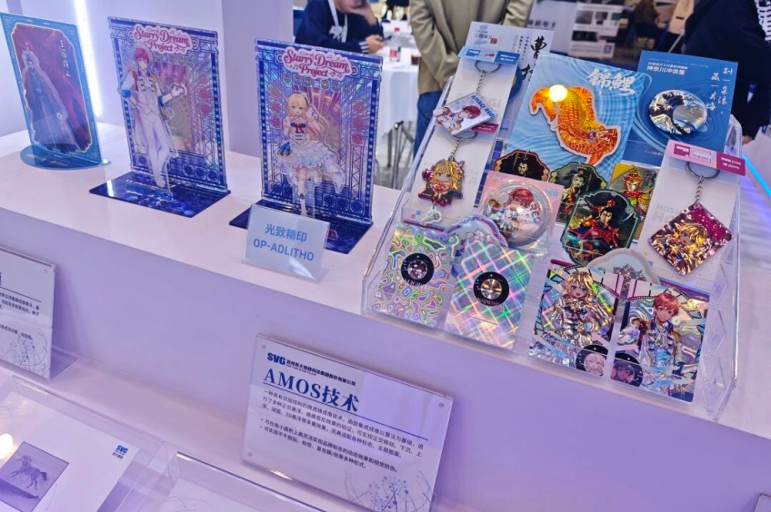 如何讓平平無奇的卡牌視覺上“立”起來?怎樣讓二維“吧唧”呈現(xiàn)發(fā)絲飄逸、絲帶飛揚的三維質感?蘇大維格的光致精印技術,讓這些都成為現(xiàn)實。