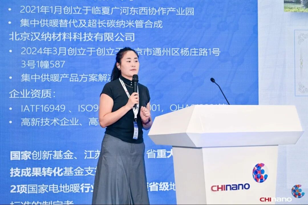 蘇州漢納材料科技有限公司銷售總監(jiān)朱晶晶,分享了《碳納米管及硅碳負(fù)極的研發(fā)及應(yīng)用進(jìn)展》。該公司依托自主研發(fā)的超長碳納米管合成、無損分散及精密成膜技術(shù),實現(xiàn)電熱轉(zhuǎn)換率高達(dá)99.19%的納米發(fā)熱膜,遠(yuǎn)紅外轉(zhuǎn)換率超85%,顯著提升能效與舒適度。同時,漢納材料在硅碳負(fù)極方向開發(fā)出10nm級納米硅合成技術(shù),為動力電池提供高性能負(fù)極方案;并在單壁碳納米管的量產(chǎn)方向取得顯著突破。企業(yè)憑借60余項專利及多地產(chǎn)學(xué)研合作,持續(xù)拓展碳材料在新能源、健康建筑等領(lǐng)域的應(yīng)用邊界。