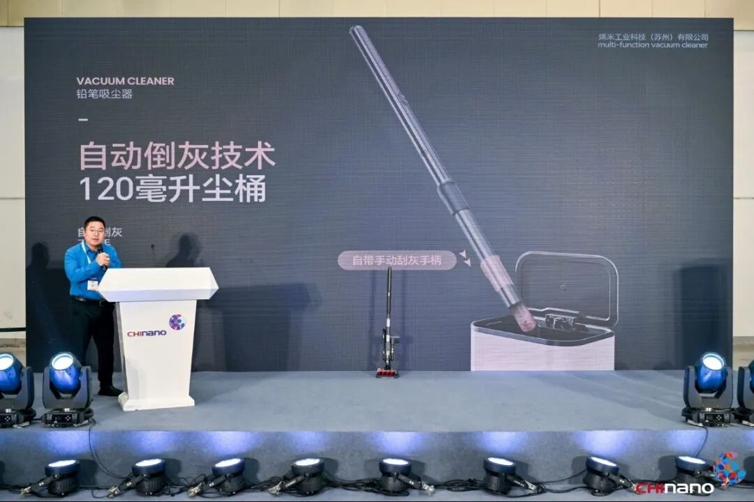烯米工業(yè)科技(蘇州)有限公司研發(fā)總監(jiān)耿軍政,介紹了《基于碳納米材料開發(fā)的鉛筆吸塵器發(fā)布介紹》。烯米工業(yè)擁有全球唯一的自有核心技術(shù),其產(chǎn)品采用在高分子材料領(lǐng)域占據(jù)不可替代金字塔頂端地位的聚酰亞胺作為基材。基于此復(fù)合材料做基材添加,做出高強度、高模量的高性能的碳纖維材料并在此材料基礎(chǔ)上開發(fā)出靈巧輕便、纖細(xì)如筆式的新一代清潔家電。此外,該公司利用此復(fù)合材料制造出的核心原料——高品質(zhì)石墨烯粉體,制造出齒輪箱專用潤滑油,專為應(yīng)對齒輪在超高轉(zhuǎn)速工況而設(shè)計的高性能潤滑解決方案。將此專用潤滑油用在其新一代清潔家電上,攻克了在密閉環(huán)境中高轉(zhuǎn)速電機和齒輪箱的散熱問題。