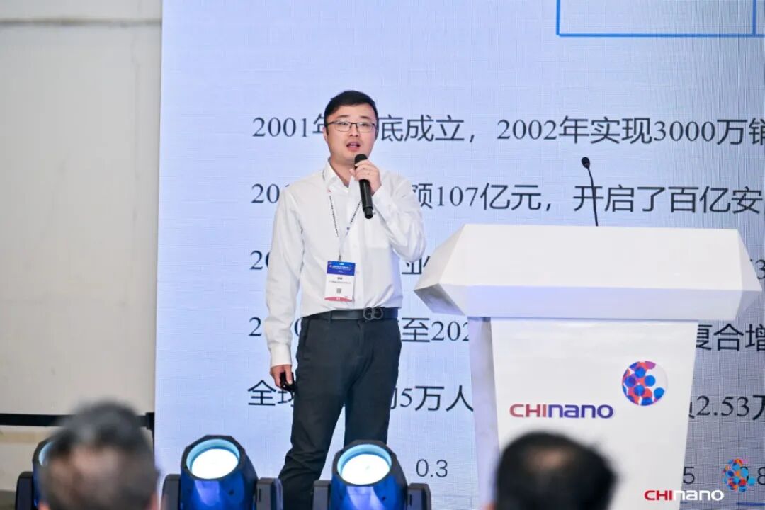 蘇州鈞祥新材料有限公司技術(shù)總監(jiān)徐黎明,帶來了主題《高通量負(fù)載的層狀氧化硅納米材料》的分享。他介紹道:其公司研發(fā)的高通量負(fù)載層狀氧化硅納米材料,突破了傳統(tǒng)金屬納米粒子負(fù)載技術(shù)瓶頸,具備超高比表面積和有序孔道結(jié)構(gòu),實現(xiàn)了金屬納米顆粒的高負(fù)載與均勻分散,有效解決了高溫?zé)Y(jié)與團(tuán)聚等行業(yè)痛點。該材料在無機抗菌、高效催化、電磁屏蔽、鋰電隔膜等領(lǐng)域展現(xiàn)出廣泛應(yīng)用潛力,已通過多家單位試用并實現(xiàn)銷售,具有成本低、性能優(yōu)、可定制等優(yōu)勢,為推動納米材料產(chǎn)業(yè)化發(fā)展提供了關(guān)鍵支撐。