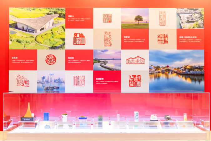 一枚“飛翔”印,源于園區成立30周年標志雕塑。巧妙融合蘇州房瓦元素與飛揚線條,象征這片土地“中新合作、面向未來”的期許。一枚“草鞋山”印,刻畫的正是有著“江南史前文化標尺”之稱的草鞋山考古遺址公園。這方穿越六千年的時光印章,刻錄著蘇州最早的稻作文明與先民智慧,是園區歷史的無聲見證。