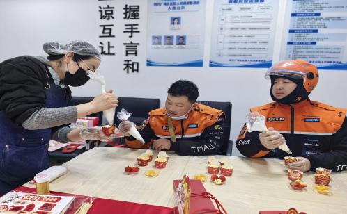 風里來雨里去、與時間賽跑是外賣小哥工作的常態,他們的大部分時間就是不停接單、送餐。為豐富外賣小哥的業余生活,同時拉近社區與新就業群體的距離,時代廣場北社區精心組織各類活動。2月上旬,社區組織開展了“暖心護航新就業一起手作小蛋糕”“花聚鄰里情潤小哥——新春插花暖心會”活動,邀請外賣小哥共同參與,讓平日里奔波在路上的他們也能偶爾停下腳步、放松身心。在蛋糕制作現場,大家互相協助、交流心得,親手打造專屬甜品;插花活動中,在花藝老師的指導下,小哥們巧手搭配花枝,感受傳統年俗與花藝之美,在輕松溫馨的氛圍中舒緩了工作疲憊,切實感受到社區的貼心陪伴。