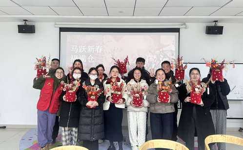 香堤社區(qū)的居民們則圍坐一堂,親手制作新春抱抱桶。銀柳、冬青、金葉在指尖交錯,紅果與福卡點(diǎn)綴其間,一桶桶繁花錦簇的作品,不僅承載著制作者的新年祈愿,更被送往快遞小哥、外賣騎手等新市民勞動者手中。那些平日里穿梭街巷、為他人送去便利的身影,在這一刻,也收到了一份屬于自己的、來自鄰里的手作祝福。