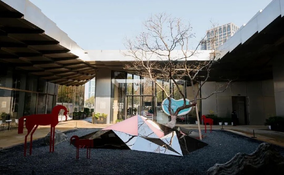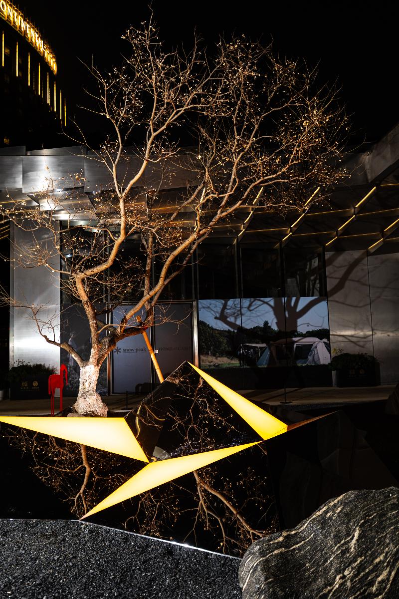 與月光碼頭的潮流未來感遙相呼應,不遠處的金雞驛09內,另一處全新鏡面藝術裝置《疊石窺天》同步登場,以更具東方韻味的姿態靜候知音,實現了傳統美學與現代藝術的巧妙碰撞,為即將到來的新春佳節,增添了一抹雅致又靈動的藝術氛圍。