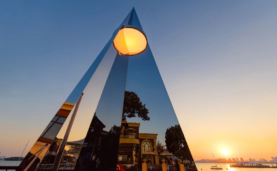 近日,蘇州工業園區金雞湖畔迎來兩處鏡面藝術裝置,以鏡為載體、以光為筆墨,將自然景致與藝術創意完美交融,為市民游客打造了沉浸式浪漫打卡地,也為園區公共空間注入了全新的藝術活力,讓金雞湖的冬日景致更具層次感與人文韻味。