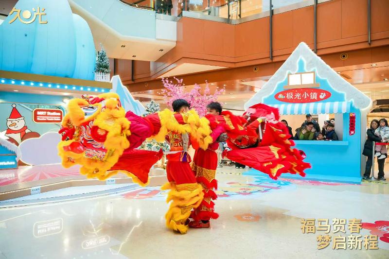 非遺演出更是精彩紛呈。木鳥象劇團(tuán)帶來的非遺燈彩主題巡游將剪紙、年畫、風(fēng)箏等元素幻化于華服與燈彩,交織成流動(dòng)的光影劇場;大年初一,夏國璋龍獅團(tuán)以梅花樁、一柱擎天等高樁表演獻(xiàn)上了精彩的開年好戲。