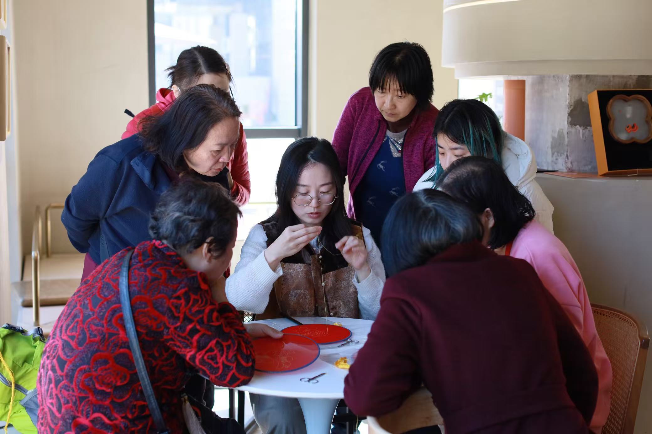 現(xiàn)場,參與者們圍坐一堂,認(rèn)真了解蘇繡歷史,在專業(yè)老師的指導(dǎo)下,一針一線繡出屬于自己的刺繡作品。不少家長帶著孩子一同參加,感慨道:“平時(shí)很少接觸這樣的傳統(tǒng)技藝,今天親手體驗(yàn),才真正感受到蘇繡的細(xì)膩和匠心,這樣的活動(dòng)特別有意義。”