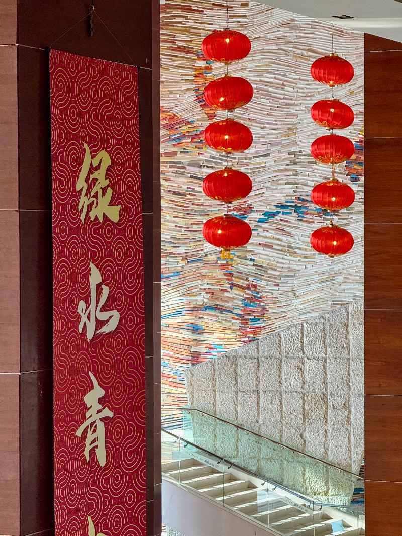 年味,不止于活動(dòng),更浸潤(rùn)在空間與細(xì)節(jié)中。金雞湖大酒店大堂以《姑蘇繁華圖》迎賓,將賓客悄然引入江南意境;酒店整體設(shè)計(jì)融匯園林“借景”智慧,營(yíng)造出自然與人文相映的沉浸場(chǎng)景。