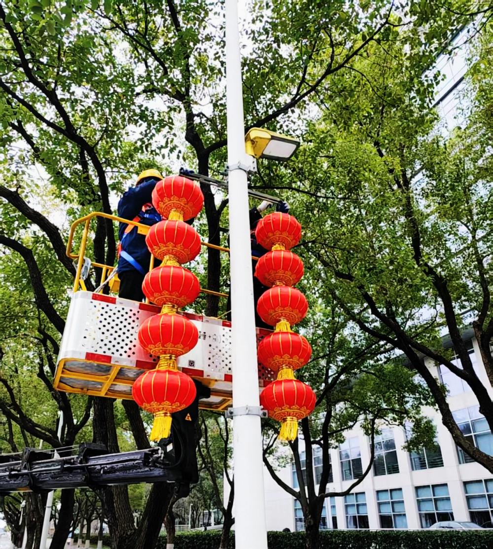 一抹抹亮眼的“中國紅”,是新春最濃郁的底色。為烘托街頭年味,市政集團推進重點區域燈籠懸掛工作,將湖東行政中心周邊的蘇州大道、金琚路、圓融環路列為核心布置區域,3960只大紅燈籠在道路兩旁路燈桿上亮相,一盞盞紅燈籠錯落有致、迎風搖曳,勾勒出喜慶的城市輪廓,成為街頭一道靚麗的風景線,讓馬年新春的氛圍感拉滿。