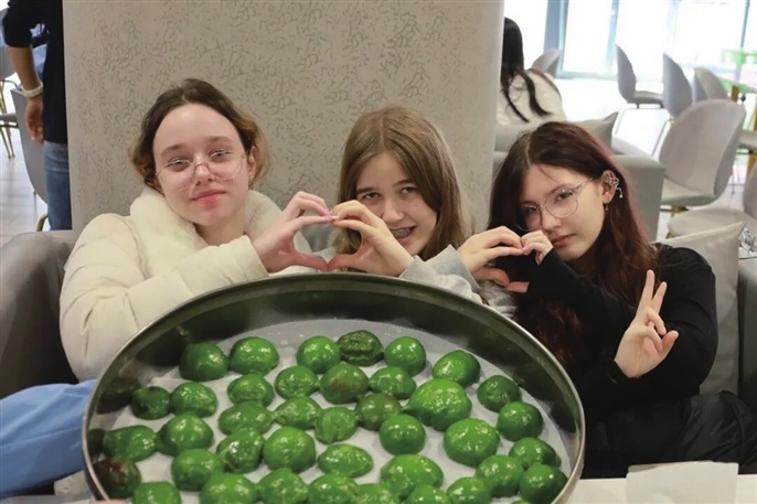 傳統(tǒng)文化的體驗,成為此行最濃墨重彩的一筆。清晨的操場上,德國師生在八段錦的一招一式中感受東方養(yǎng)生的平和律動;中文課堂里,一場以“星?!睘橹黝}的繞口令挑戰(zhàn),讓客人們在唇齒開合間解鎖漢語音律的靈動魅力。在非遺工坊,竹絲在指間穿梭,一艘艘象征友誼的小船逐漸成型;食堂里,艾草的清香彌漫,中德師生一同揉面、包餡、蒸煮,在江南春日的煙火氣中品味青團(tuán)子的清甜。