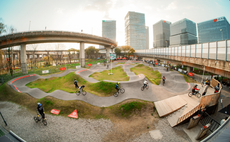 作為賽事舉辦地,園區(qū)近年來在體育事業(yè)與賽事引進方面持續(xù)發(fā)力,積極引入多元賽事品牌,不斷豐富城市休閑生活內(nèi)涵,為市民與運動愛好者搭建優(yōu)質(zhì)運動平臺。蘇州Velosolutions泵道公園占地約3000㎡,精心規(guī)劃建設(shè)入門級波浪道、初級道及標準道等不同難度賽道,可滿足從新手體驗到專業(yè)競技的全維度需求。場地選址于繁忙的婁江快速路下方,充分盤活利用城市“失落空間”,打造融合極限運動與戶外休閑屬性的開放式活力空間。自2023年10月正式開業(yè)以來,這里已迅速成為都市人群暢享戶外生活、體驗潮流運動的理想去處,連續(xù)承辦大V泵道聯(lián)賽總決賽及中國泵道自行車聯(lián)賽等重磅賽事,影響力持續(xù)輻射江浙滬區(qū)域,不斷釋放戶外運動活力,為城市生活增添動感亮色。
