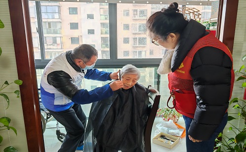 沁苑社區“精準助老”服務項目啟動以來,社區聯合藥事服務團隊的執業藥師和愛心養老機構,定期在小區內開展用藥咨詢、測量血糖、血壓等服務,同時為高齡、空巢、獨居、出行不便的老人定期上門開展安全用藥知識宣講,清理藥箱,藥物咨詢等服務。社區紅色管家志愿者對出行不便的居民定期開展走訪慰問活動,關心老人生活所需,及時提供幫助。近九十歲高齡的嚴阿姨因腳傷行動不便,老人希望能夠理個發,清清爽爽迎新年,志愿者了解情況后,帶上工具箱,上門為老人理發。精準把握老年居民的所想所需,及時為他們提供幫扶,為他們排憂解難,是沁苑社區啟動“精準助老”服務項目的初衷。