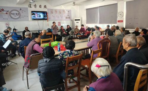 在蓮香社區(qū)的日間照料中心,經(jīng)典劇目《梁祝》《牡丹亭》等輪番上演,雖然沒有精致的服裝和妝造,但“民星”們精湛的表演和悠揚(yáng)的唱腔還是贏得了居民們的陣陣掌聲。完全由社區(qū)居民自發(fā)成立的蓮聲戲曲社,在新的一年中隊(duì)伍更加壯大,目前固定社員已有12人,每個人在吹、拉、彈、唱上都有自己的專長。每周二下午的日照中心活動室里總是人頭攢動,社區(qū)的戲迷們更是早早地來到了活動室,就為了搶到靠前的位置。“現(xiàn)在每周二,我雷打不動地過來聽?wèi)颍?/font>在家門口看大家的表演,真是過足了戲癮!”社區(qū)居民李奶奶興奮地說道。社區(qū)常態(tài)化開展豐富多彩的文化活動,不僅讓居民感受到了文化的魅力,也進(jìn)一步拉近了鄰里之間的距離,讓居民“家門口”的文化大餐觸手可及。