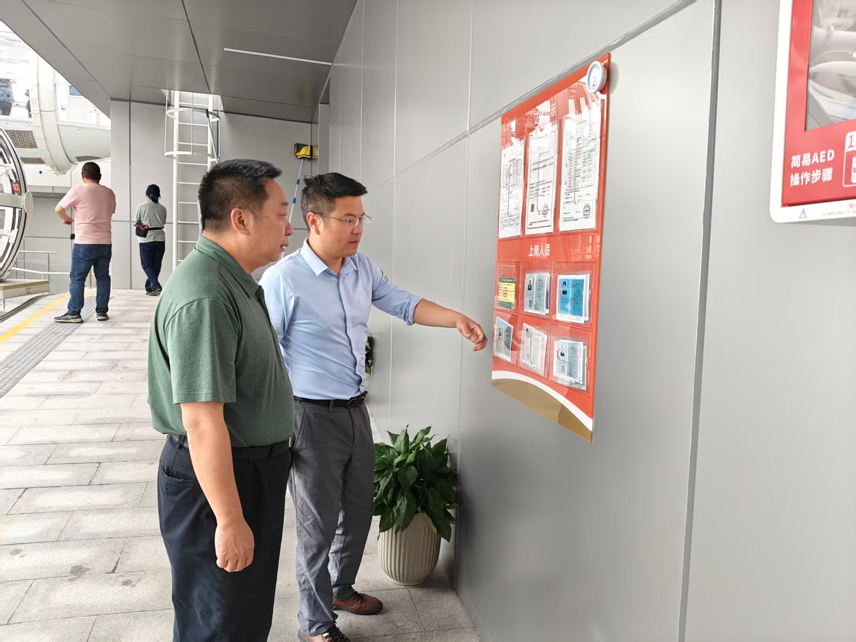隨著“五一”假期的臨近,為切實(shí)保障特種設(shè)備安全運(yùn)行,園區(qū)市場(chǎng)監(jiān)管局高度重視,對(duì)金雞湖摩天輪、國(guó)際博覽中心等重點(diǎn)場(chǎng)所開展節(jié)前安全督導(dǎo)工作。現(xiàn)場(chǎng)了解金雞湖摩天輪開業(yè)一個(gè)多月的設(shè)備運(yùn)行狀況、人流量、人員值班值守情況,提出完善乘客須知、作業(yè)人員公示板等信息。結(jié)合國(guó)際博覽中心的展會(huì)需求,監(jiān)察人員和特檢院專家對(duì)人流量較大的扶梯、乘客電梯等開展重點(diǎn)隱患排查,測(cè)試緊急停止及其他安全保護(hù)裝置,建議使用單位負(fù)責(zé)人提前做好更換計(jì)劃,為游客和參展人員提供一個(gè)安全可靠的環(huán)境。