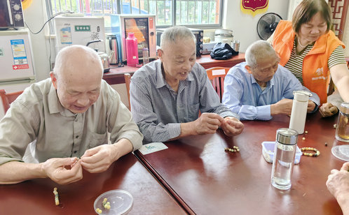 面對銀齡群體精神文化供給不均衡現狀,蓮韻社區日間照料中心創新打造“藝趣工坊”,推出菩提串珠、水晶花藝、綠植盆栽等手工課程,為長者搭建了一座“精神糧倉”,在創造中重拾生活意趣。在紅色管家志愿者的指導下,一顆顆菩提籽在指尖串聯成寓意吉祥的珠鏈,晶瑩剔透的水晶花在巧手下綻放出別樣光彩,充滿生機的綠植盆栽在精心照料中煥發盎然綠意,這些手工項目宛如“生活的調色盤”,不僅成為疏解孤獨感的“情緒減壓閥”,更以美育浸潤煥發銀齡精神風貌,推動社區文化服務從零散活動向常態化滋養體系躍升,為精塑“雅趣共生”服務格局注入鮮活脈動。