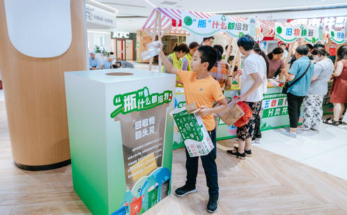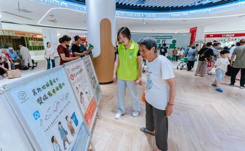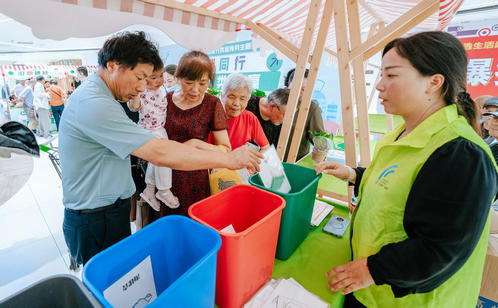 趣味游戲區(qū)的創(chuàng)意設(shè)計(jì)亮點(diǎn)頻出。居民們手持打卡地圖,穿梭于“垃分視力表”“分類大轉(zhuǎn)盤”“綠色補(bǔ)給站”等八大互動(dòng)點(diǎn)位,通過趣味測(cè)試、知識(shí)問答、投擲游戲等方式邊玩邊學(xué)。“‘瓶’什么都給我”專區(qū)人氣爆棚,居民王阿姨用積攢的飲料瓶?jī)稉Q了綠蘿,笑得合不攏嘴。“城投再生”“綠色補(bǔ)給站”和“舊物煥新”專區(qū)也深受居民青睞,居民們拎著紙箱、舊衣物排隊(duì)兌換環(huán)保袋、文具等實(shí)用物品,直觀感受到“垃圾是放錯(cuò)位置的資源”。游戲化體驗(yàn)不僅提升了垃圾分類知識(shí)的趣味性和互動(dòng)性,更讓居民在輕松愉悅的氛圍中掌握分類技巧、提升環(huán)保意識(shí)。針對(duì)還不太熟悉如何正確分類的居民,志愿者則一對(duì)一講解垃圾分類知識(shí),實(shí)現(xiàn)寓教于樂“零距離”。此外,志愿者們還同步宣傳倡導(dǎo)“光盤行動(dòng)”“限塑”“減少使用一次性用品”等源頭減量、簡(jiǎn)約適度的生活方式。