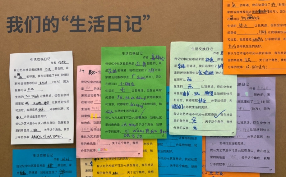 “我記憶中的社區看起來是彩色的,家是幸福的味道。”這是展板上一位居民寫下的“生活交換日記”。45份生活日記,45種對于社區生活的不同見解,正如居民代表史保利提到,“這不僅僅是一場藝術活動,更是一次走進自己、走進鄰里、走進社區的奇妙的旅程。”本次“藝術畫像計劃”突破舊有場館界限,深入社區肌理,成為每一個普通人參與公眾表達的媒介,讓居民們從“被看見”中獲得歸屬感,從日常分享中產生共鳴,真正發自內心的認同“藝術就在身邊”。