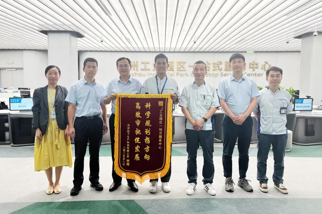 蘇州松下生產(chǎn)科技有限公司負責(zé)人親自送來錦旗,衷心感謝園區(qū)行政審批局及一站式服務(wù)中心在新項目建設(shè)竣工階段的高效服務(wù),保障了8月6日前實現(xiàn)竣工備案及“竣工即投產(chǎn)”目標,比企業(yè)的預(yù)期時間提前了將近一周。